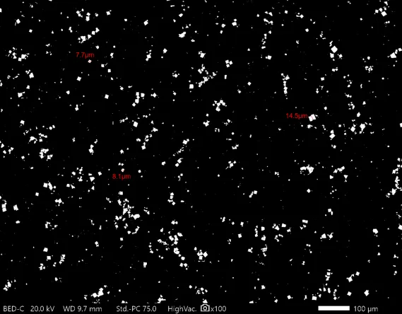 1. 急冷鋳造により、製品の組成は均一になります。アル3Sc粒子は凝集することなく分散分布しており、そのサイズは20μm以下です。